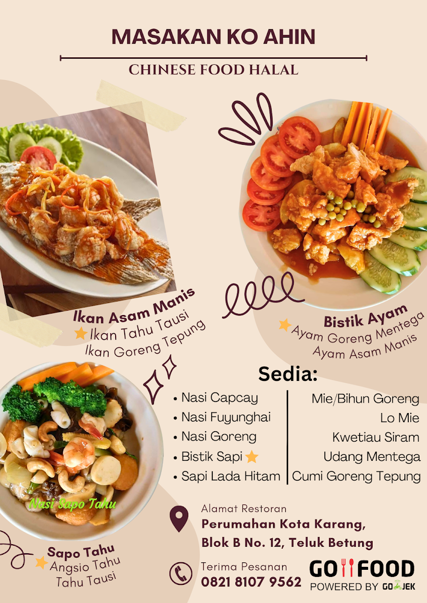Located in the serene neighborhood of Kotakarang Permai, Masakan KO AHIN is your go-to destination for authentic Chinese cuisine. This charming restaurant offers a diverse menu that caters to all palates, featuring favorites like Capcay Tumis and Sapo Tahu, both rich in flavors and cooked to perfection, priced affordably at IDR 40,000 and IDR 50,000 respectively. Seafood lovers will relish the Sapo Seafood and Capcay Seafood, both offering a delightful taste at IDR 60,000 and IDR 50,000.